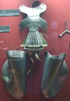 Die Brust ist im Allgemeinen wie die Stechbrust mit Rüst- und Rasthaken versehen. An die Brust wird ein sogenannter “Bart” aus Eisenblech geschraubt, der die Hälfte des Gesichtes deckt. An das Magenblech schließen sich die Bauchreifen und an diese die Rennschösse, die meist geschoben sind.